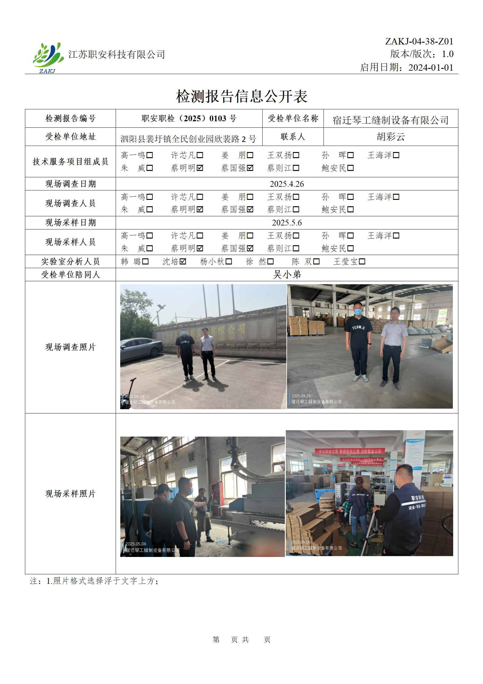 檢測報告公示