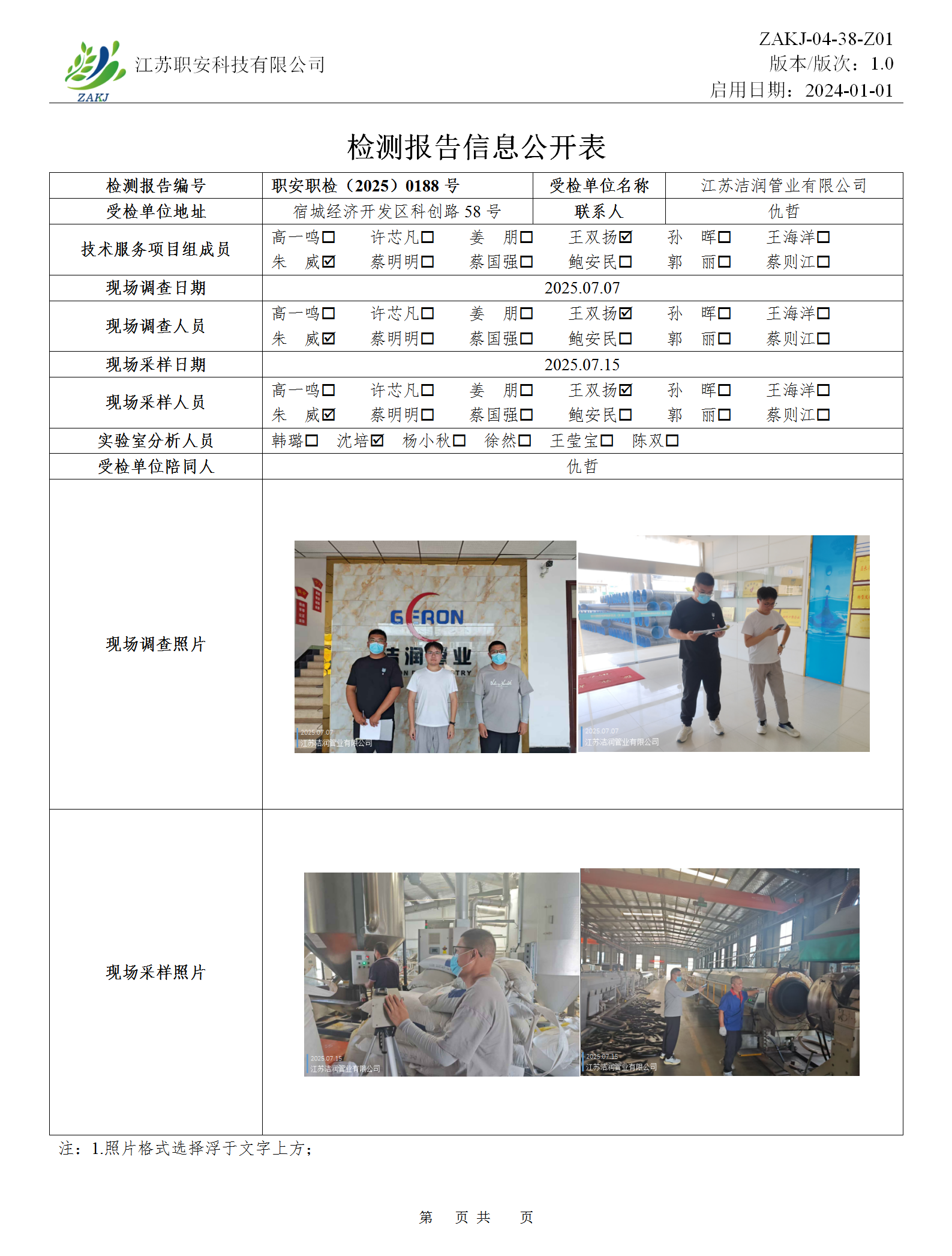 檢測報告公示