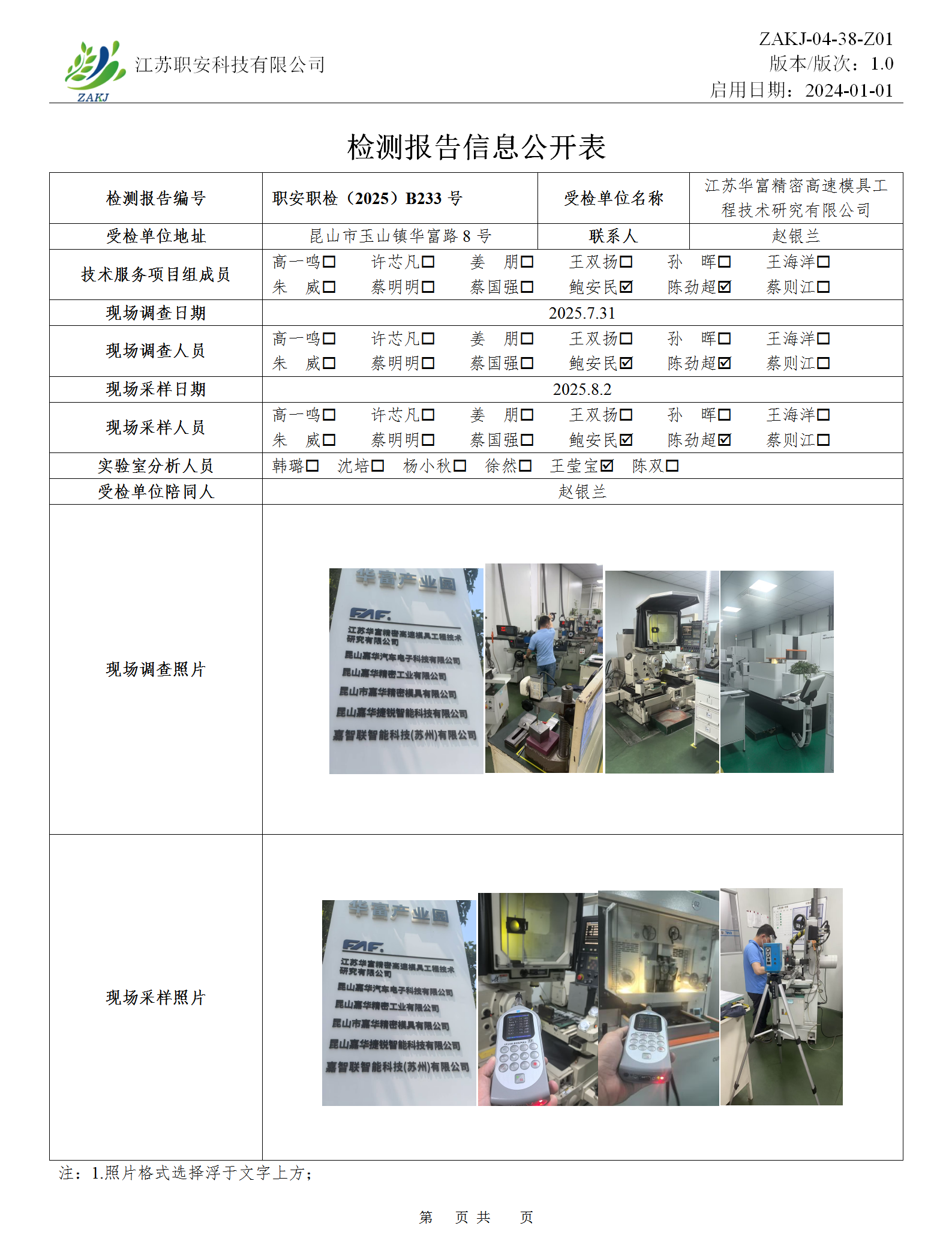 檢測報告公示