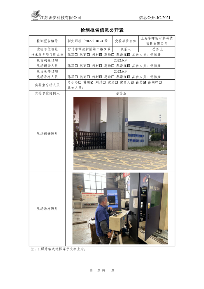 檢測報告公示