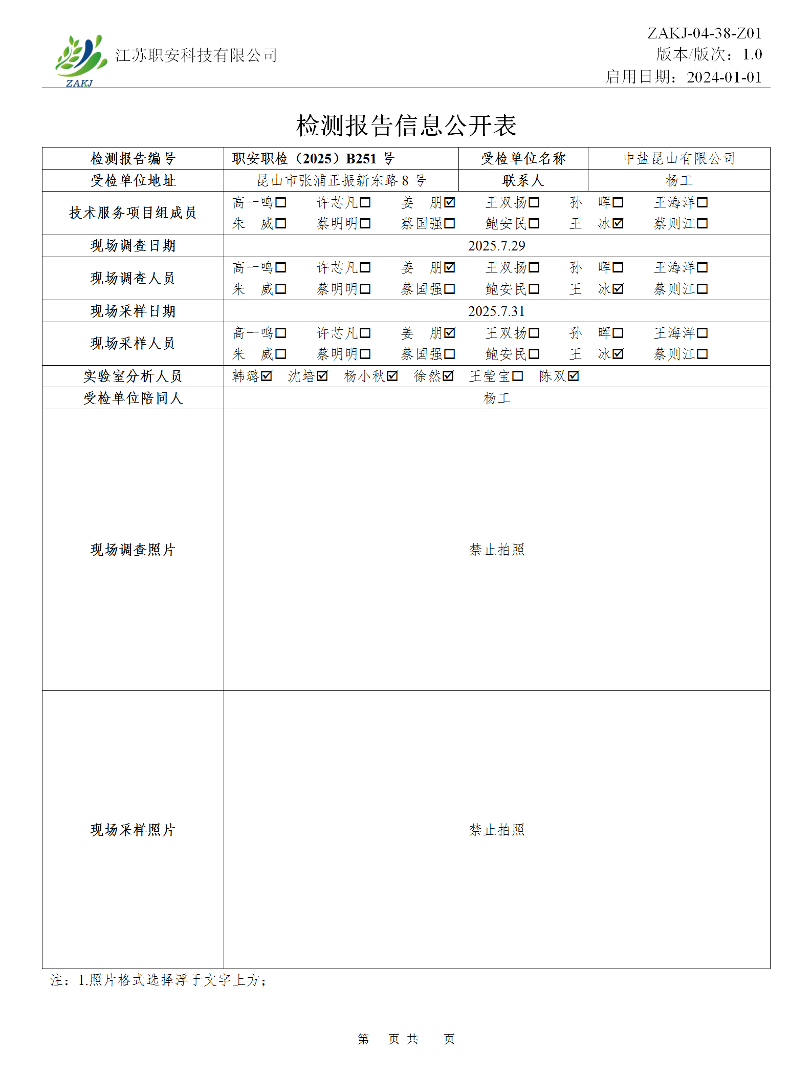 檢測報告公示