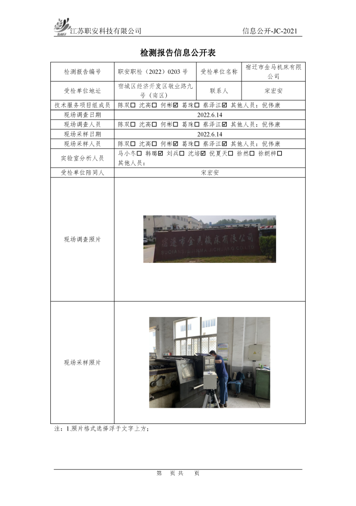 檢測報告公示