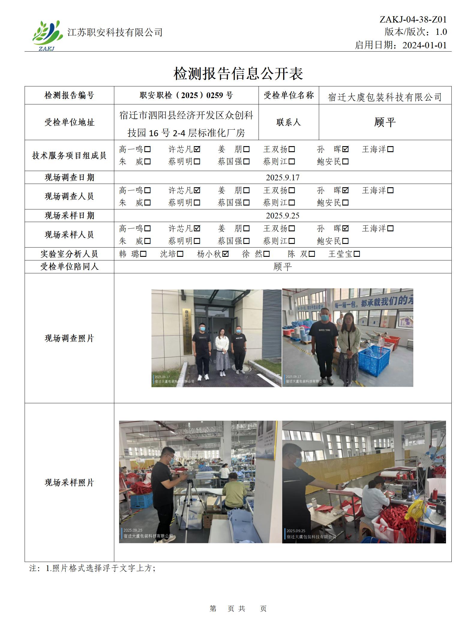 檢測報告公示