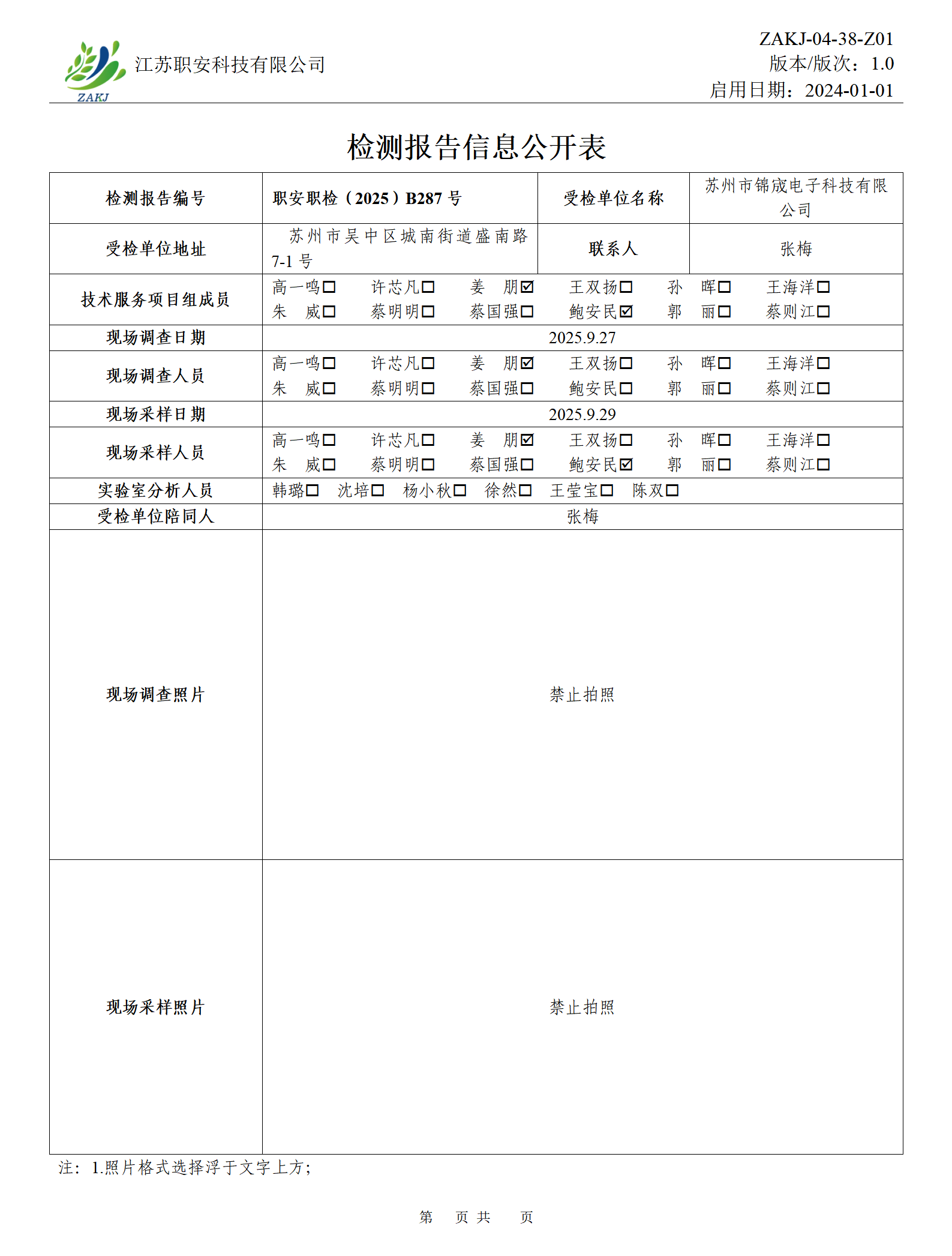 檢測報告公示
