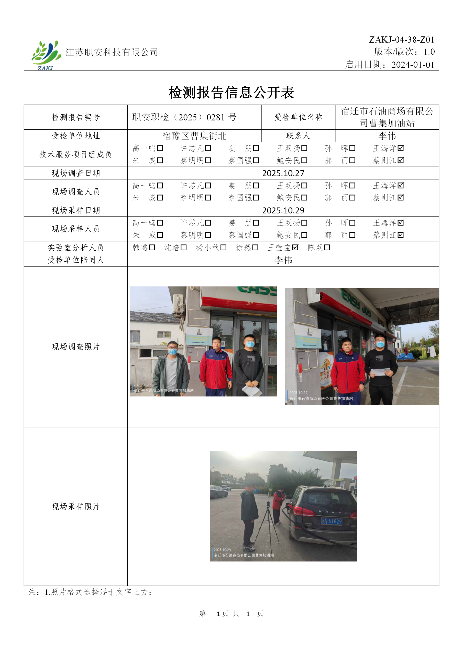 檢測報告公示